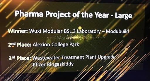 Modubuild, the Kilkenny headquartered high tech modular construction company with operations and offices across multiple European countries has received a prestigious award having designed and constructed a multi million euro, turnkey vaccine facility for Global Biopharma Company Wuxi Vaccines in less than half the time that projects of this nature normally take. The project won the award for “Large Project of the Year” at the Pharma Industry Awards 2020 which took place virtually in December.