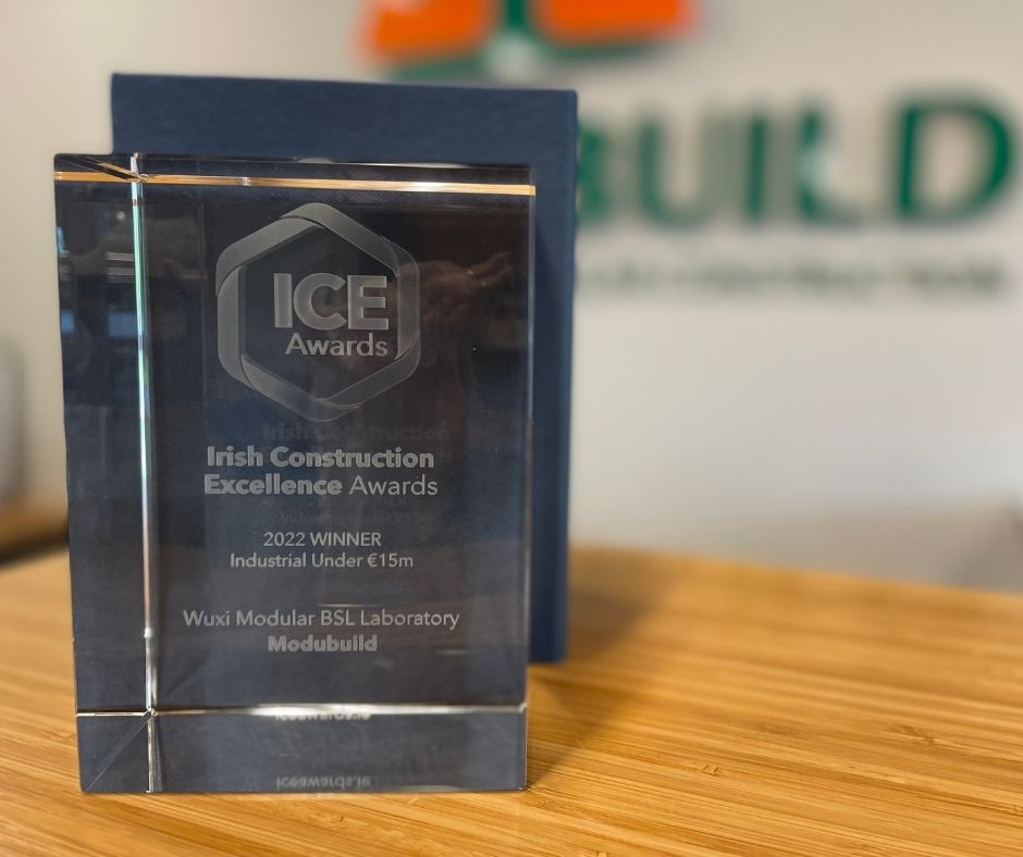 Modubuild were honoured to win the Industrial Under €15m category at the Irish Construction Excellence Awards 2022 on Saturday, 14th May at the Convention Centre, Dublin. Modubuild were awarded the prize for their work on WuXi Vaccines BSL Modular Laboratory.